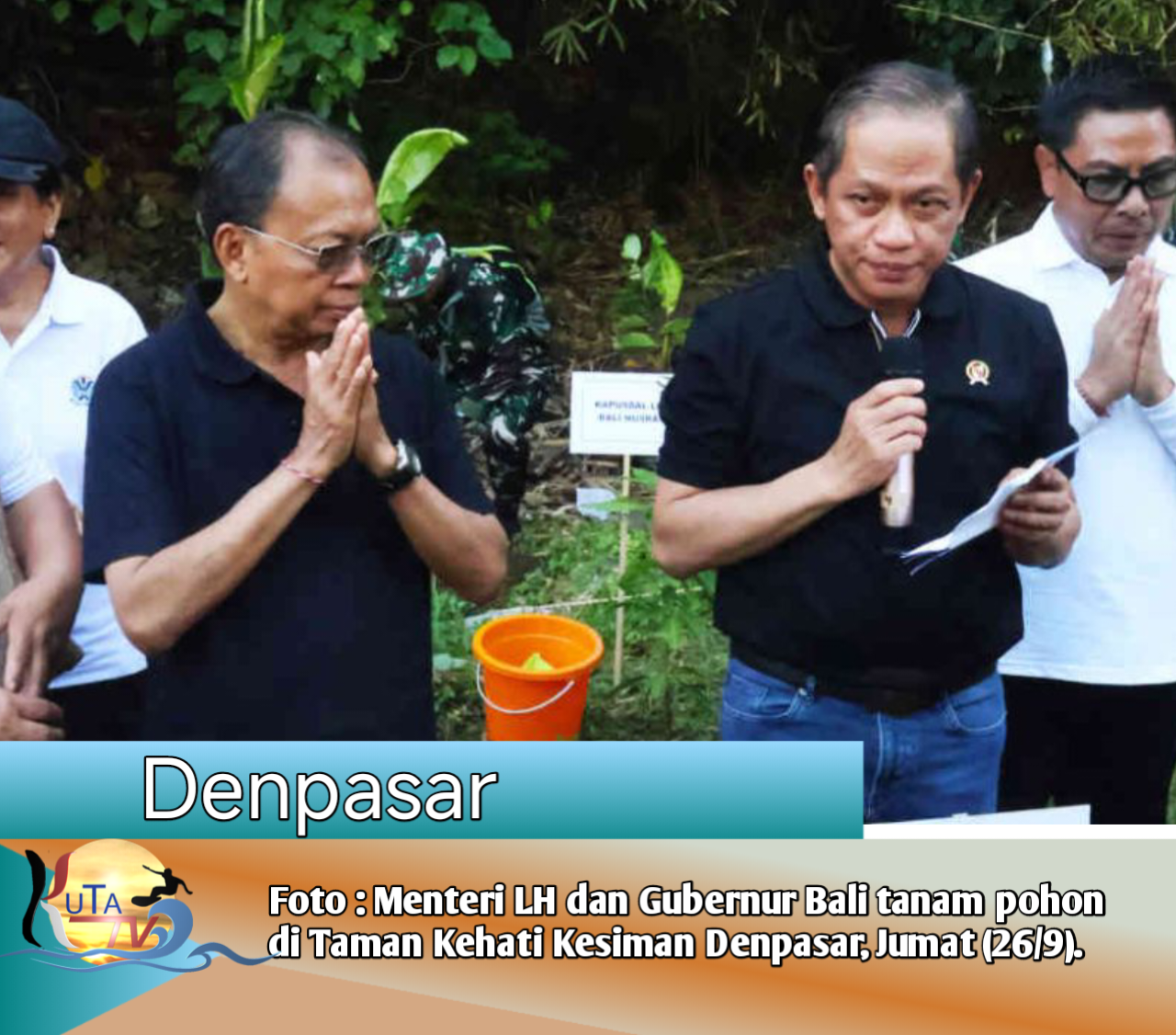 DENPASAR, Kutatv.com – Gubernur Bali Wayan Koster bersama Menteri Lingkungan Hidup  RI Hanif Faisol Nurofiq melaksanakan penanaman pohon secara simbolis di Kawasan Taman Kehati, Kesiman, Denpasar, tepatnya di tepi Tukad Ayung, pada Jumat (26/9) pagi.