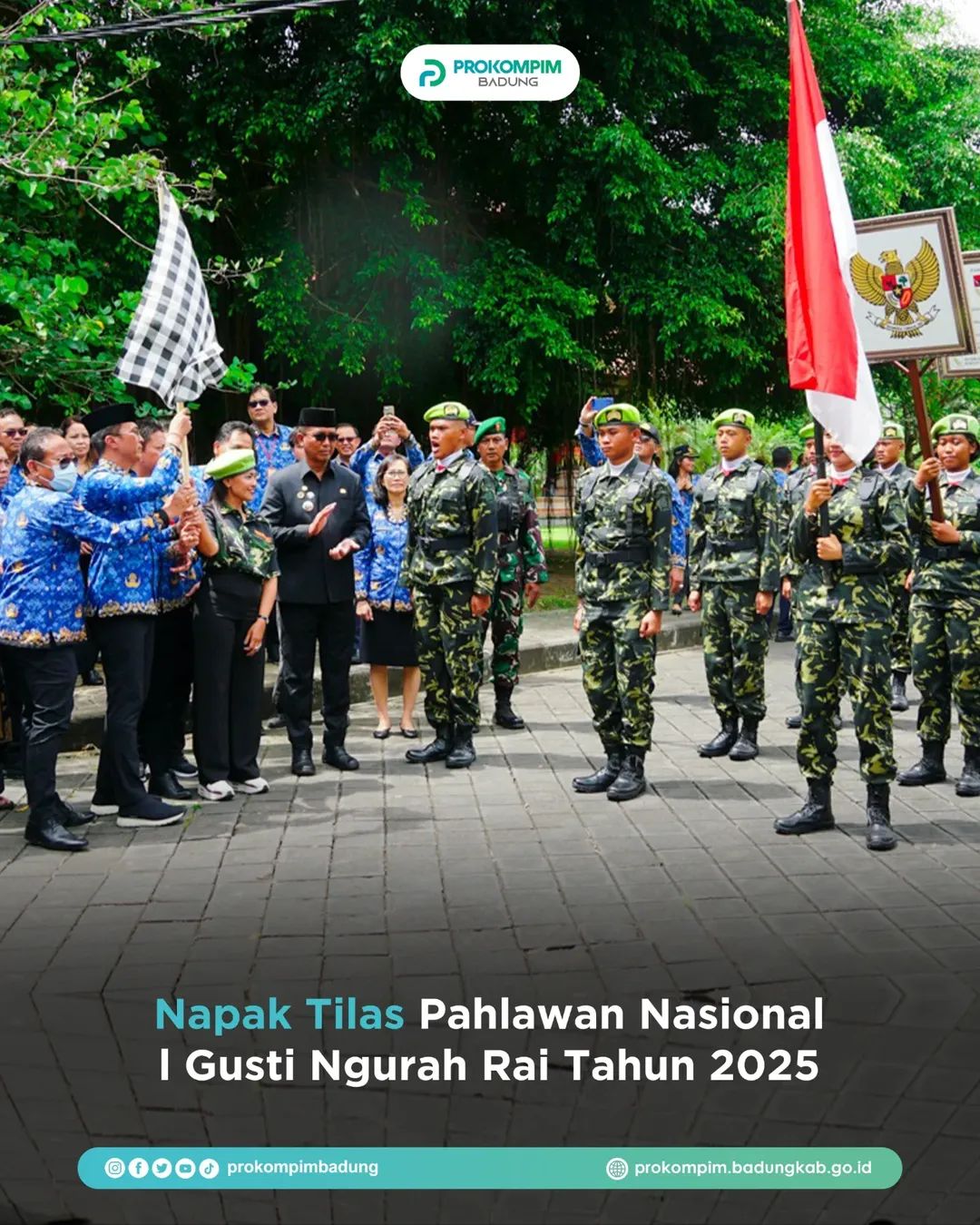 Kegiatan ini berlangsung di Wantilan Pura Lingga Bhuana Puspem Badung, Senin (17/11/2025) dengan tema “Mengabdi Tanpa Batas Berjuang Sepanjang Masa Tetap Tegaknya NKRI”. Kegiatan ini juga ditandai dengan serah terima Pataka Panji Panji dan surat sakti I Gusti Ngurah Rai, serta penandatanganan naskah serah terima oleh Sekda Surya Suamba dan perwakilan petugas Napak Tilas.