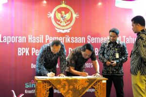 Denpasar – ( Kutatv.com ) – Wakil Bupati Badung Bagus Alit Sucipta bersama Ketua DPRD Badung I Gusti Anom Gumanti menerima Laporan Hasil Pemeriksaan (LHP) Kepatuhan atas Pengelolaan Pajak Daerah dan Retribusi Daerah (PDRD) Tahun 2024 hingga Triwulan III Tahun 2025 dari Badan Pemeriksa Keuangan Republik Indonesia (BPK RI) Perwakilan Provinsi Bali. Penyerahan laporan berlangsung di Four Star by Trans Hotel, Jalan Raya Puputan, Renon, Denpasar, Senin (29/12/2025).