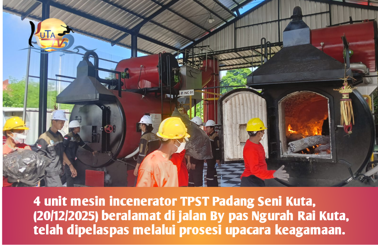 Kuta-Badung ( Kutatv.com ) 4 unit mesin incenerator TPST Padang Seni Kuta, (20/12/2025) beralamat di jalan By pas Ngurah Rai Kuta, telah dipelaspas melalui prosesi upacara keagamaan.